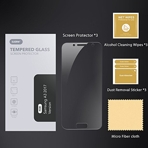 SUERW Vetro Temperato Samsung Galaxy J3 2016, [3-Pack] Pellicola Protettiva in Vetro Temperato per Samsung Galaxy J3 2016 (0.25mm HD Alta Trasparenza)