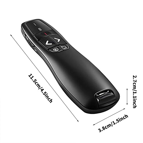Plug and Play: questo clicker remoto a LED rosso è compatto, portatile e risparmio energetico, confortevole sensazione di mano. Il dongle USB anti-smarrimento memorizza all'interno del presentatore per un facile imballaggio e portabilità, non facile da cadere. Basta collegarlo al computer e non è necessario installare il software.
