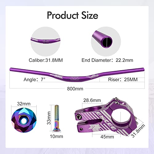 SUFUL Manubrio per Bicicletta Set, 31.8 * 800 MM Manubrio In Lega di Alluminio Riser Bar, Attacco Manubrio Corto per Mountain Bike, Set di Sterzo per Bicicletta Viola