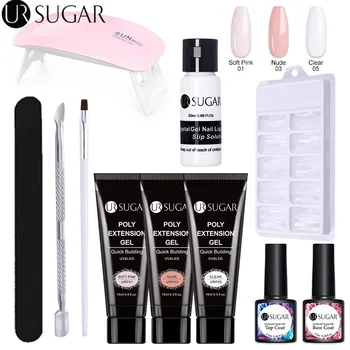 UR SUGAR 9Pcs/kit Poly UV Gel Nail Set With UV Lamp 15ml Quick Building Nail Extension UV Gel Varnish Clear Pink Gel varnish