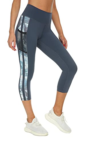 Sugar Pocket Pantaloni da corsa da yoga da donna, con tasca laterale, Blu intenso, stampa, S