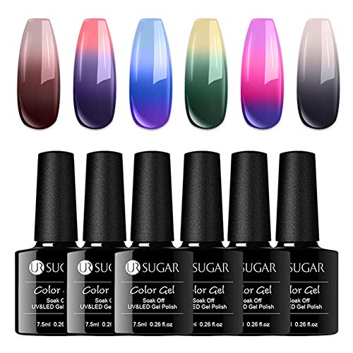 UR SUGAR 7,5ml Smalto Semipermente per Unghie in Gel Soakoff UV LED Camaleonte Smalti Cambia in Colori con Temperatura 6pcs Kit per Inverno