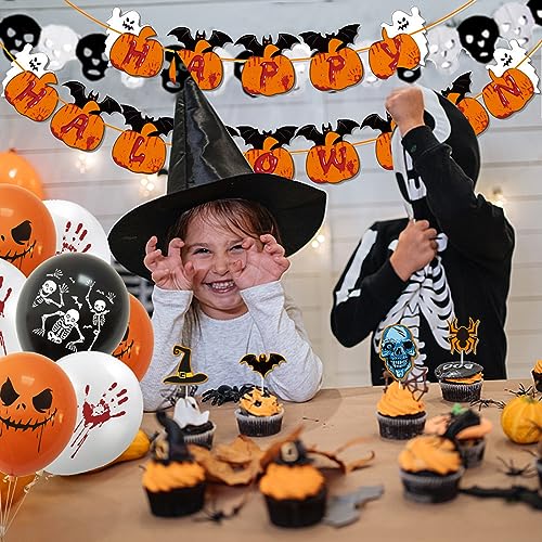 SUGSHYN Halloween Decorazioni Palloncini Horror Addobbi Set Happy Halloween Banner Ghirlande Topper Torta Halloween Decorazioni per Feste
