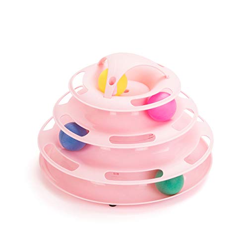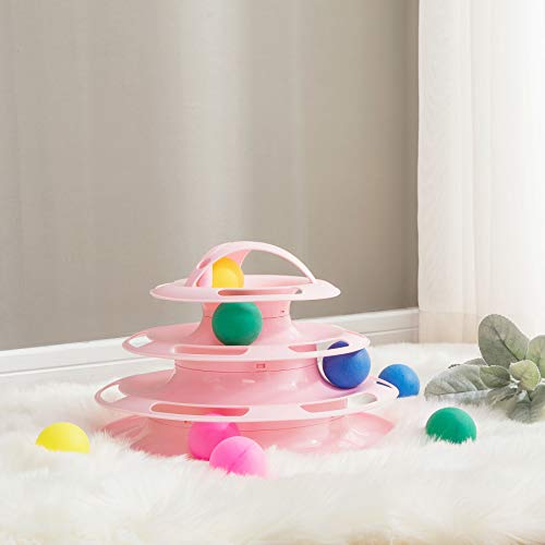 Suhaco Giocattoli per gatti Roller Interattivo a 4 Strati per Gatti da Interni Torre di Tracce Puzzle Teaser Gattino Giocattolo (Rosa)