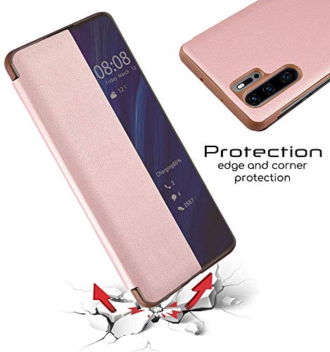 Suhctup Cover Compatibile con Samsung Galaxy A70 Specchio Custodia Intelligente Smart View Cover Portafoglio Flip Silicone Trasparente Case in Pelle Bumper Folio Copertura Mirror Shell