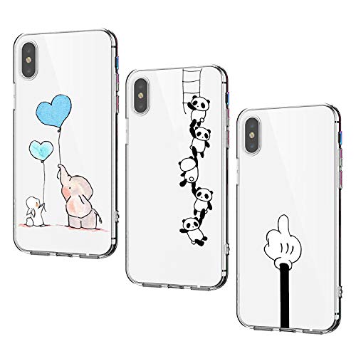 Suhctup [3 Pack Custodia per iPhone X/XS, Silicone TPU Morbido Ultra Sottile Carino Protettivo Cover, Trasparente Ultra Thin Soft Gel Cute Cartoon Protettiva Case