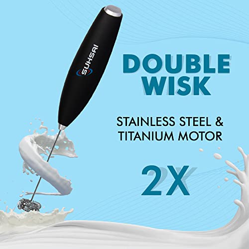 Suhsai Montalatte Doppia Frusta Portatile con Frullino per le Uova - Montalatte Elettrico Schiumatore con Supporto - Montalatte per Caffè per Latte, Cappuccino, Cioccolata Calda - 19000 giri/min(Nero)