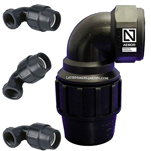 Suinga Confezione da 4 x gomito femmina in polietilene 25 mm x 3/4" Prodotto con certificato AENOR utilizzato in tubi PE 25 mm per uso idraulico, irrigazione e cantiere.