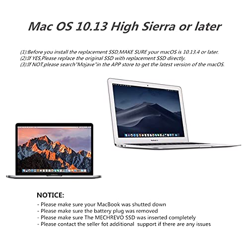 Non compatibile con le versioni precedenti come macOS 10.13 (2010 2011 2012 27" e 21.5" iMAC A1419 A1418). Si prega di utilizzare la vostra SSD originale per aggiornare il vostro MacOS prima dell'installazione