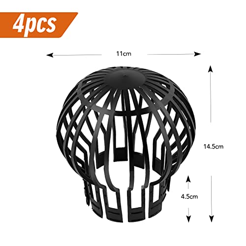 Suiwki 4 Pezzi Protezioni per Grondaia Plastica Parafoglie per Canali di Gronda 14,5 * 11 cm (diametro x altezza) Chiusura per grondaia nero Protezione Antipioggia per Grondaia