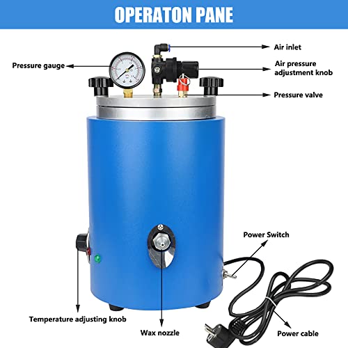Capacità del serbatoio interno di 2,5 litri, può fondere un massimo di 2 kg di cera alla volta, adatto per gioielli complessi, artigianato che realizzano stampi in cera