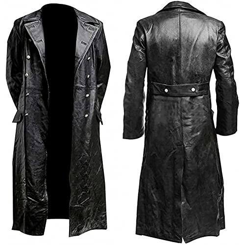 Sujinxiu Trench in pelle da uomo Trench coat nero da ufficiale militare classico tedesco per l'inverno