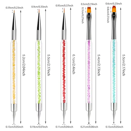 Sularpek 5 Pezzi Pennelli Nail Art, Pennelli Unghie gel, Pennelli Unghie Doppia Testa, Decorazioni Unghie Penne Dotter, per Nail Art Attrezzi a Doppia Punta UV Gel Liner Pittura Pennello, Detailing