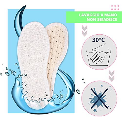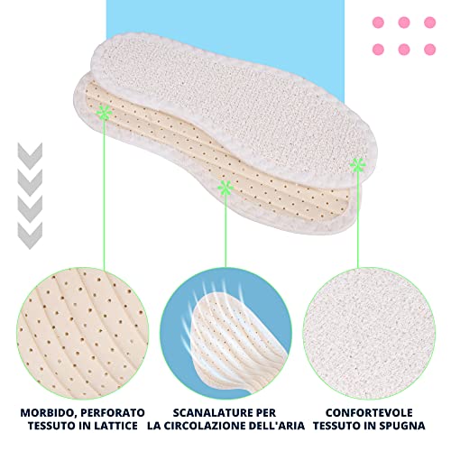 SULPO 2 paia di solette per bambini in 100% spugna di cotone con ammortizzazione in lattice, solette contro odori sgradevoli e batteri, taglia 24-35