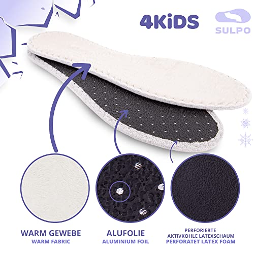 SULPO 2 Paia Solette Invernali Bambini - Morbida Pelliccia Artificiale PES, Lattice Antiscivolo, Carbone Attivato, Isolamento in Lamina Alluminio - Solette Isolanti, Termiche per Piedi Sudati