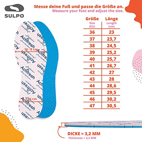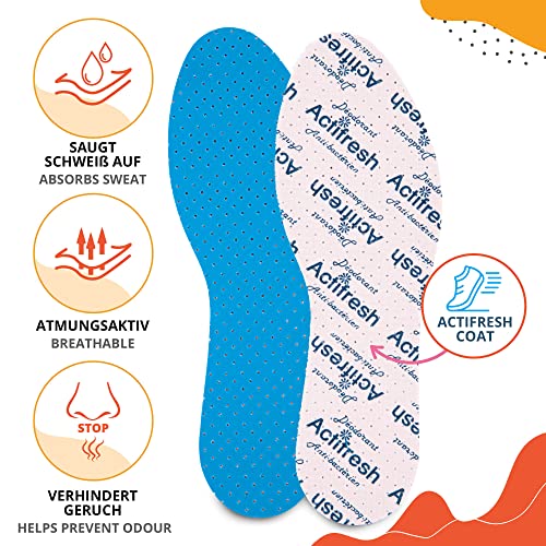 SULPO 4 paia di solette anti sudore Actifresh, inserti anibbatterici, per piedi freschi, solette per scarpe da lavoro, disinfezione delle scarpe, misura: 47