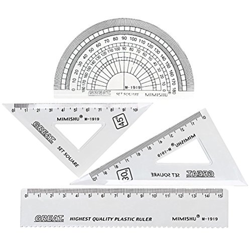 Sumaju righello set, 4 set pezzi matematica geometria plastica trasparente righello dritto quadrato triangolo goniometro strumento di misurazione Transparent