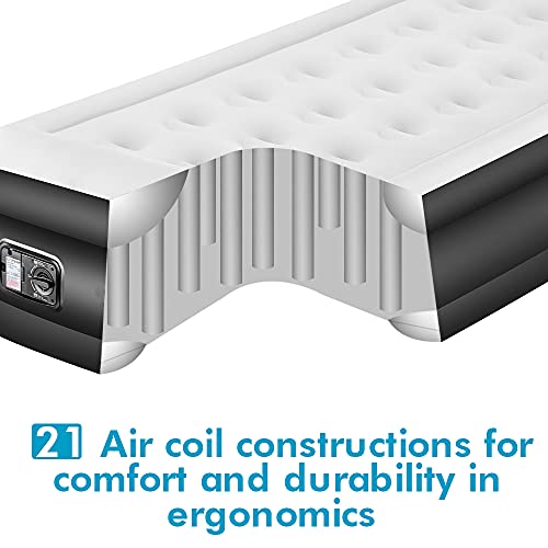 Comodo e di supporto: materasso ad aria, progettato con una struttura di supporto interna, floccatura superiore morbida multistrato, supporta fino a 136 kg, offre supporto e un'esperienza di comfort. Questo avanzato sistema di supporto previene ammaccature e urti, garantendo un'esperienza di sonno confortevole.