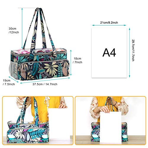 ★ Grande spazio★ La borsa è progettata con una grande borsa portaoggetti di 37,5 cm x 19 cm x 17,5 cm, abbastanza per contenere la lana e gli utensili da maglia. La borsa con cerniera di grande capacità e 2 tasche laterali con diversi motivi possono contenere bene i tuoi ferri da maglia e altri piccoli oggetti.