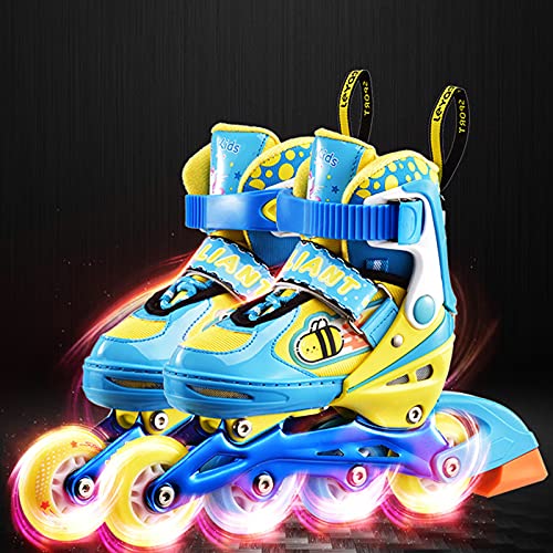 Sumeber Pattini in linea per bambini regolabili con ruote luminose, lame a rullo illuminanti divertenti con tripla protezione per interni ed esterni, regalo di compleanno