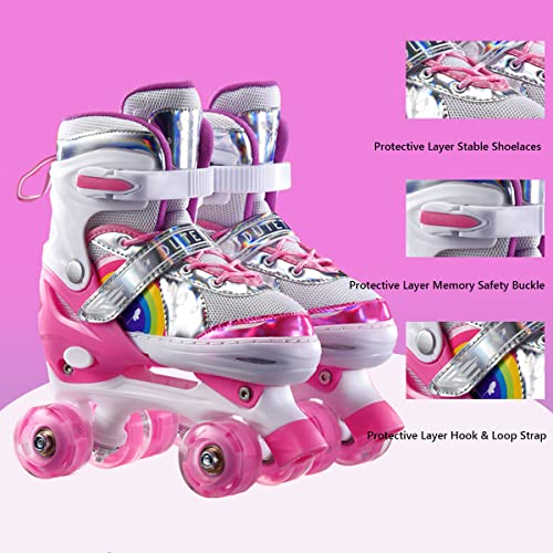 Sumeber Pattini a rotelle per bambini, regolabili, con ruote luminose, per ragazze e ragazzi, pattini in linea per bambini, principianti, interni ed esterni, regalo di compleanno (Pink)