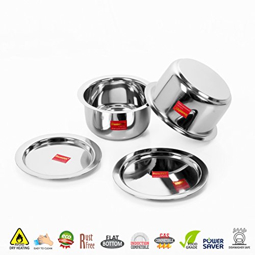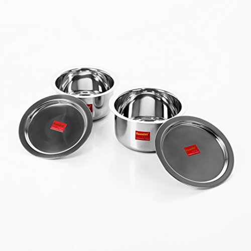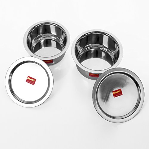 Sumeet 2 pezzi in acciaio INOX, a induzione e fornello a gas friendly contenitore set/tope/pentole con coperchi - size No. 10 & No. 11