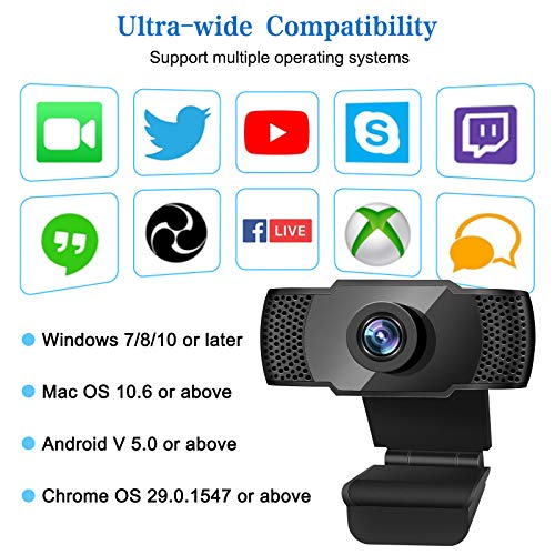 SUMGOTT Webcam per PC, 1080p HD Webcam con Microfono Stereo, USB 2.0 Webcam per Video Chat e Registrazione, Compatibile con Windows, Mac e Android