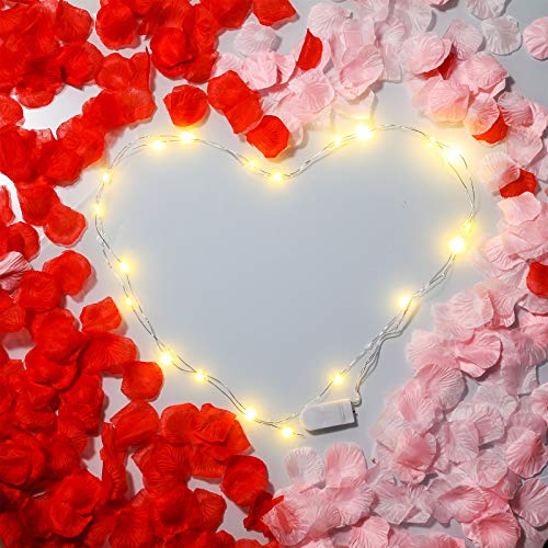 Sumind 2000 Pezzi Petali di Fiori Artificiali Petali di Rosa Misti Assortiti Petali di Fiori Finti di Valentine in Rosso e Rosa con Luci a Corda e Punti Adesivi per Decorazioni di Nozze