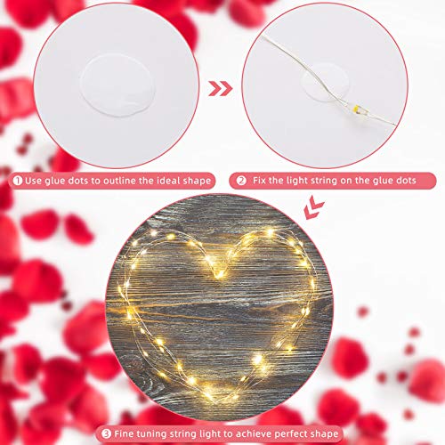 Funzionamento facile delle luci delle corde: le luci delle corde accattivanti sono dotate di punti adesivi, puoi usare direttamente i punti adesivi per fissare le luci delle corde in molti punti in cui i petali decorano, che è un modo semplice per te e te potresti usarli per preparare una piacevole sorpresa per il tuo amante e le famiglie