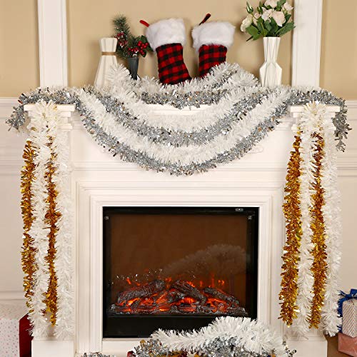 Sumind 6 Pezzi Tinsel di Natale 39.4 Piedi Ghirlanda Metallica Decorazione Appesa Scintillante per Albero di Natale Forniture per Feste di Matrimonio (Bianco)