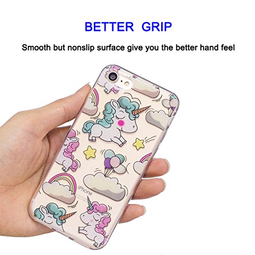 Suming Cover iPhone 7 Custodia Protettiva Transparente Cover Morbida in Silicone TPU Custodia Flessibile Ultra Sottile Practical Scratchproof Shockproof Shell Cover Antigraffio Antiurto Anti polvere - Unicorno carino