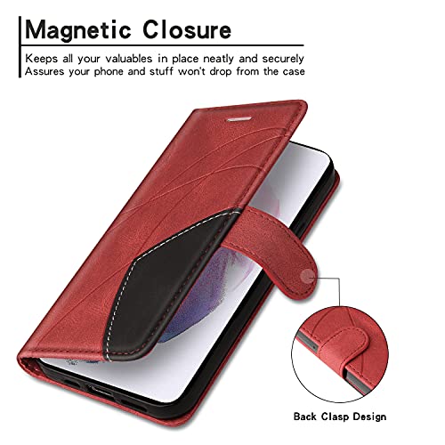 SUMIXON Cover per Galaxy S21 / Galaxy S30, Custodia in PU Pelle per Samsung Galaxy S21 / Galaxy S30, Portafoglio Cover a Libro con Chiusura Magnetica e Slot per Carte, Rosso