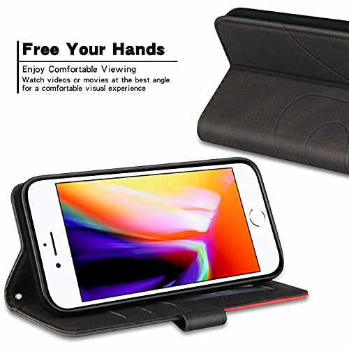 SUMIXON Cover per iPhone SE 2020 / iPhone 8 / iPhone 7, Custodia in PU Pelle per iPhone SE 2020 / iPhone 8 / iPhone 7, Portafoglio Cover a Libro con Chiusura Magnetica e Slot per Carte, Nero
