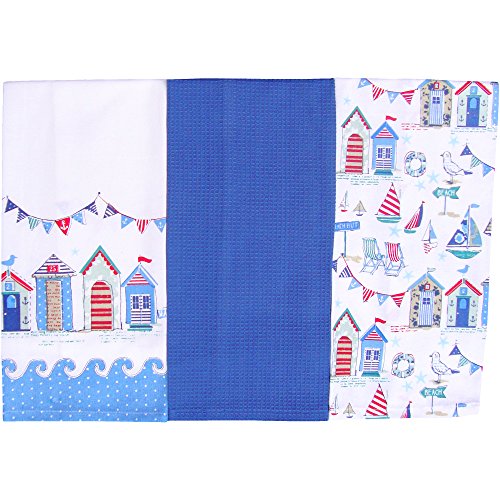 Summer Beach Holiday Deluxe cotone strofinacci da cucina set di 3