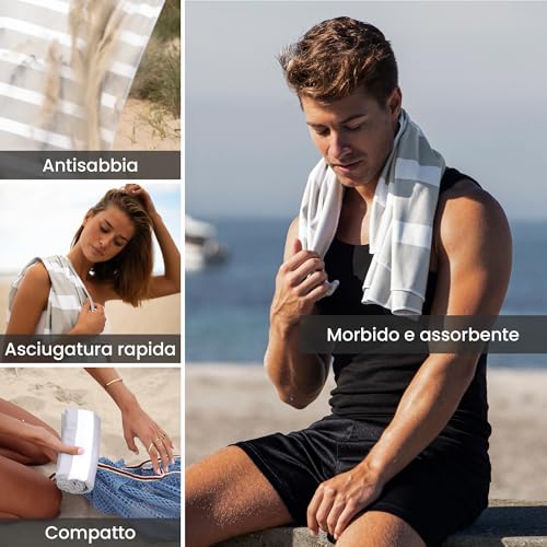 ASCIUGATURA RAPIDA E SUPER ASSORBENTE - Non aspettare delle ore per far asciugare il tuo telo. Aggiungi al tuo borsone da spiaggia un asciugamano fortemente assorbente ad asciugatura rapida, morbido sulla pelle e che si asciuga tre volte più velocemente dei teli normali.