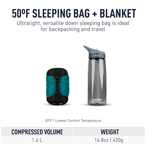 Grazie alla chiusura lampo su tutta la lunghezza, può essere utilizzata anche come coperta. Il materiale in nylon 15D ultraleggero riduce al minimo il peso e le dimensioni dell'imballaggio. Certificato RDS 750+ Loft ULTRA-DRY Down può essere ripiegato con un secondo viaggiatore. La coperta da viaggio garantisce maggiore calore.