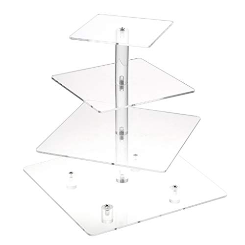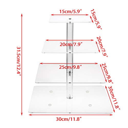 SUMNACON Alzata per cupcake realizzata in acrilico trasparente per torta per festa di matrimonio, compleanno, laurea, decorazione per cupcake (4 piani quadrati)