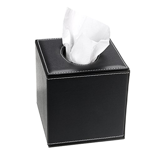 SUMNACON - Scatola per fazzoletti quadrata, in similpelle, per casa, ufficio, colore: nero