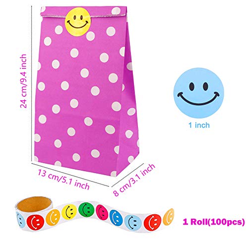 Sumnos 40 Pezzi Sacchetti Regalo Carta 8 Colori DOT Pattern con con Un Rotolo di 100 Adesivi faccine per Bambini Natale Festa Compleanno Forniture
