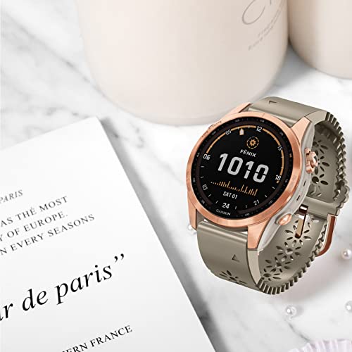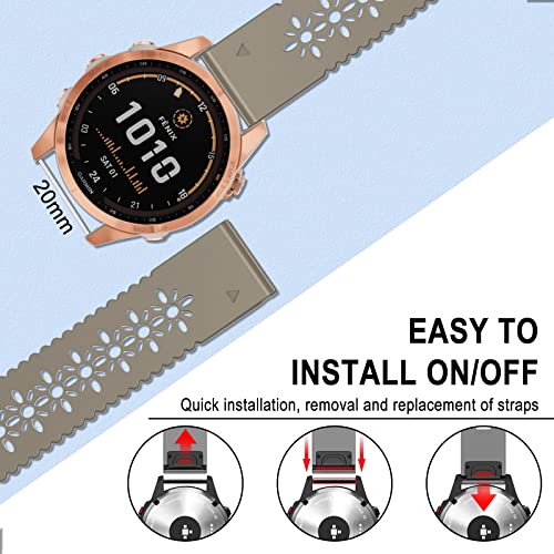 SumRioo QuickFit 20mm Cinturino per Garmin Fenix 7S Pro Solar/Fenix 7S/Fenix 6S/Fenix 6S Pro, Floreale Traforato Schema Ricambio Silicone Cinturini per Garmin Fenix 5S/Fenix 5S Plus - Cachi