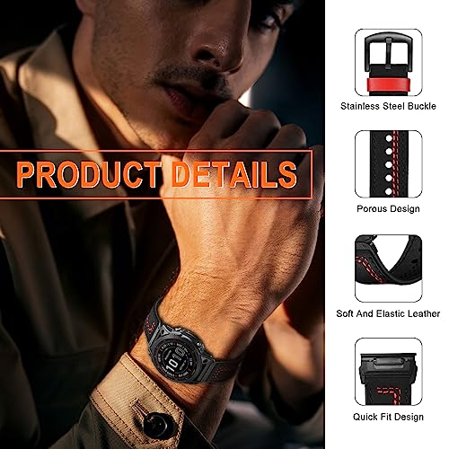 SumRioo QuickFit 26mm Cinturino per Garmin Fenix 7X Pro Solar/Fenix 7X/Fenix 6X GPS/Fenix 6X Pro, Alta Qualità Pelle Cinturini di Ricambio per Garmin Fenix 5X Sapphire/Fenix 5X Plus - Nero