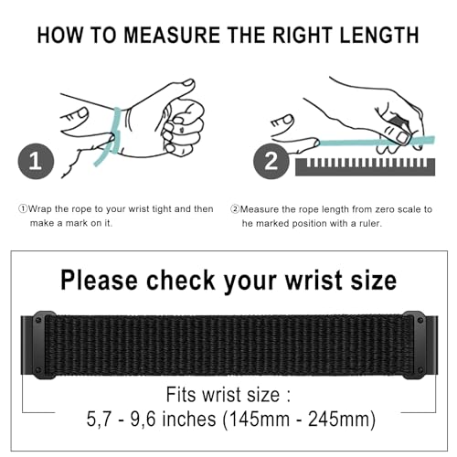 3. [Disegno in Velcro]: Questo cinturino di ricambio presenta un design in velcro migliorato per sicurezza e stabilità e la lunghezza può essere facilmente regolata per garantire una vestibilità comoda, mentre protegge l'orologio e ne impedisce la caduta, anche durante un intenso esercizio fisico. Adatto a polsi di dimensioni pari a 145 mm/5,7" e 245 mm/9,6".
