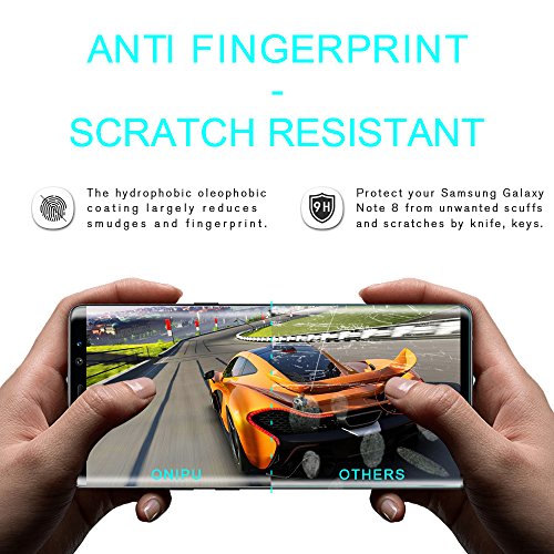 custodia friendly - onipu Galaxy Note 8 pellicola salvaschermo in vetro temperato è appositamente progettata per Samsung Note 8 schermo curvo per evitare sovrapposti e utilizzare tutti i tipi di casi, misura la cassa del telefono bene senza Gap o bolle.