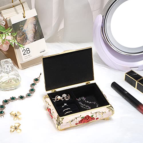 SUMTree Portagioie vintage con coperchio in metallo bianco latte con forma di fiore rosso, scatola portagioie (medio)
