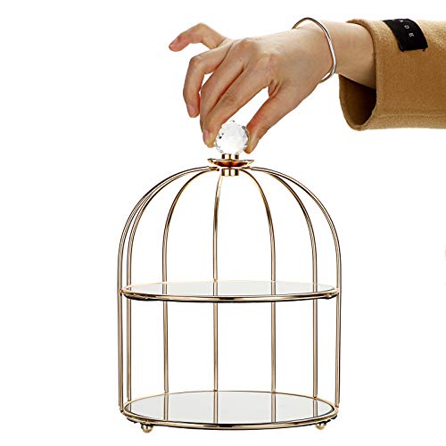 SUMTree Vassoio cosmetico vassoio di servizio vassoio decorativo a forma di gabbia doppio strato organizzatore per gioielli, profumo (dorato)