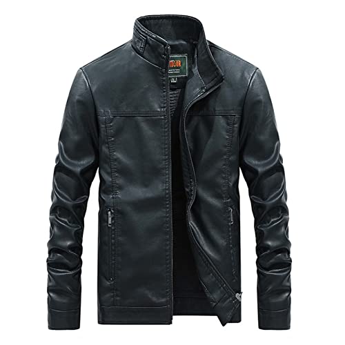 Sunangle Giacca Pelle da Uomo Slim Fit, Giacca da Moto Primaverile Tinta Unita Giacca in Pelle Giubbotto Bomber Collare in Piedi Autunno Giacca,Nero,M