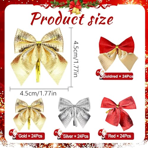 SunAurora 96pcs Fiocchi per Albero di Natale,Rosso Oro Argento Fiocchi Natalizi, Fiocchetti Piccoli per Decorazioni,Fiocchi Nastro di Natalizio,per Decorazione Ghirlanda di Natale, Confezione Regalo