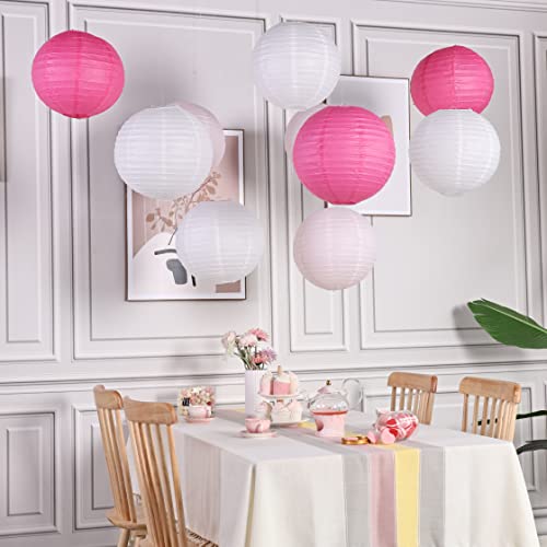 SUNBEAUTY 10 Pezzi di 30 cm Lanterna di Carta, Lanterne Rotonde in Carta, Festa Compleanno, Matrimonio Anniversario, Festival (Celiegia + Bianco + Rosa)