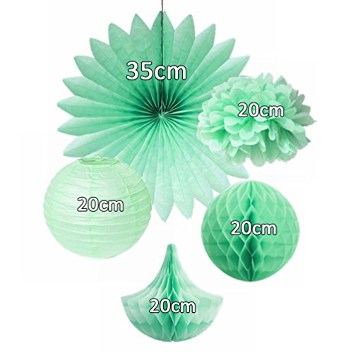 SUNBEAUTY Set di 5 Pompon Fiore Sfera puntinato rosone e-Lanterna da Parete, Compleanno, Battesimo, Matrimonio pque, Verde Menta