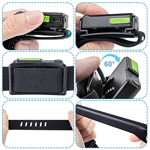 SUNBLESA Torcia frontale ricaricabile impermeabile bianca rossa a 2 luci per pesca, campeggio, escursionismo, ciclismo, corsa, uso esterno, leggero, adatto per adulti e bambini